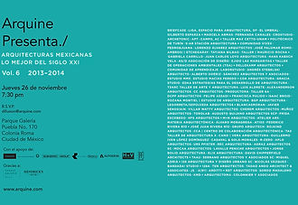 El próximo jueves 26 de noviembre a las 7:30 pm se presenta el libro Arquitecturas mexicanas. Lo mejor del siglo XXI. Vol.6.